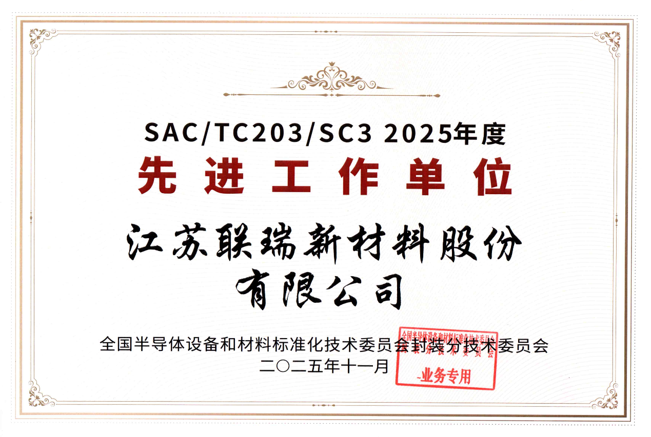 聯(lián)瑞新材積極參與標(biāo)準(zhǔn)研制項(xiàng)目,2025年度成功發(fā)布《集成電路封裝用低放射性球形氧化硅微粉》和《集成電路封裝用球形氧化鋁微粉》兩項(xiàng)國家標(biāo)準(zhǔn),榮獲“2025年度標(biāo)準(zhǔn)化先進(jìn)工作單位”稱號(hào)。